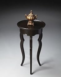 Birch veneer top. Made from selected hardwoods. Rubbed black finish. 16 in. Dia. x 28.25 in. H (24 lbs.) A tribute to its petite size, this graceful round accent table is a perfect fit between chairs, beside a sofa or bed.