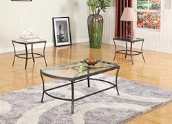 - 3 Pc Glass And Pewter Finish Metal Frame Coffee Table & 2 End Tables Occasional Table Set.