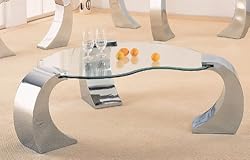 LOWEST Price on the Web...Shipping is FREE!BEST PRICE on the Web!FREE Shipping!FAST FedEx Service!QUESTIONS? Call us! 800-718-1710Update your living room decor with beautiful contemporarily styled, durable constructed and good look Silver Finish Occasional Coffee Table by Coaster. Coffee Table features beveled kidney glass top and chrome plated Legs, glass table top. Refresh your living room area with the beautiful simplicity and elegance Coffee Table by Coaster! Matching end table and sofa table available.