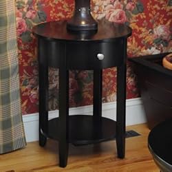 The bay shore collection round side table adds modern contemporary style to every living room and family room. Accent furniture is a great way to completely change the look and feel of your living and entertaining space. Get rid of those old clunky square end tables and step it up to round. The bay shore collection round side table also has a lower shelf which is great for display. Round tables work great as entryway tables in entrances that are too small for half round tables. Round tables conveniently fit right into any corner. The assembled dimensions of the round side table are 17.5-Inch length by 17.5-Inch deep by 22.4-Inch height. Black finish. Assembly takes approximately 30 minutes. Made from china maple, also known as rubberwood, a renewable resource. China maple is not a cheaper soft wood which easily dents and scratches. China maple, in the same family as american maple, is a hardwood heavy, dense and durable. This table will last for years and with proper care look as good as new long after you get it home.